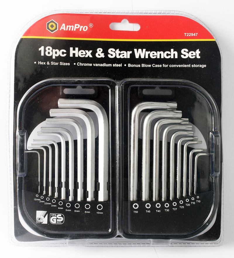 Приобрести T22947 Набор длинных Г-образных 18 предметов (T10-T50; М1,5-М10) от компании AmPro (Тайвань) из раздела Шестигранники по цене 2 055 рублей.