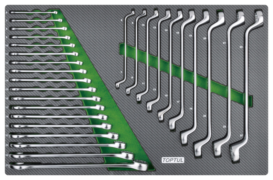 Набор комбинированных и накидных ключей 6-27 мм, 28 пр в мягком ложементе TOPTUL