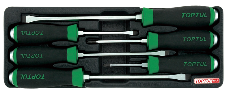 Приобрести Набор отверток ударных крест и шлиц 6 пр., в ложементе TOPTUL GAAT0601 от компании Toptul (Тайвань) из раздела Отвертки по цене 4 206 рублей.