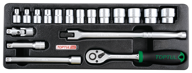 Набор головок и аксессуаров 3/8" 6-24 мм, 18 предметов в ложементе (A) TOPTUL