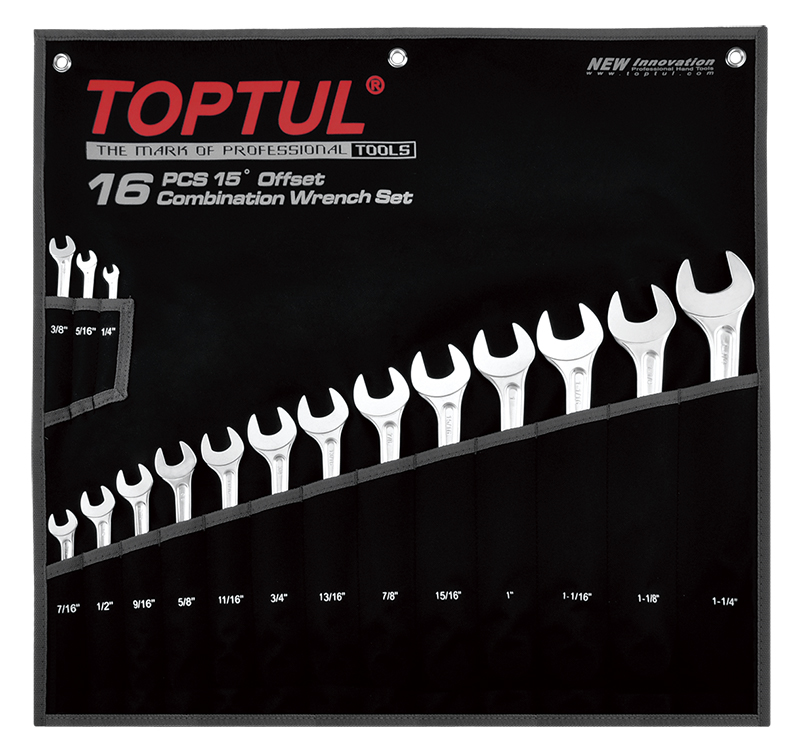 Набор ключей комбинированных дюймовых 1/4"-1-1/4", 16 предметов на полотне TOPTUL GPBX1601 купить в Ростове-на-Дону и других городах России